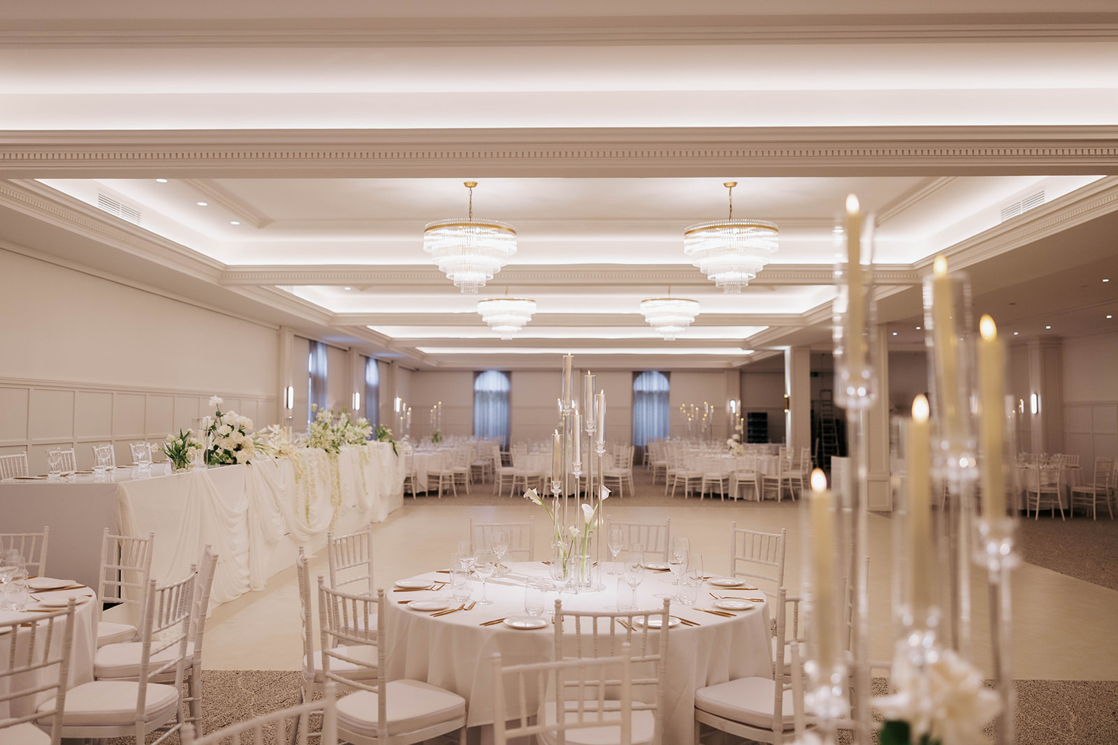 Your guests’ experience begins long before the first toast. From the stately Georgian façade to the manicured gardens and refined marble-tiled foyer, every element sets the tone for an evening of understated luxury. It’s a space that feels both welcoming and impressive - a prelude to what’s to come.